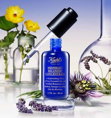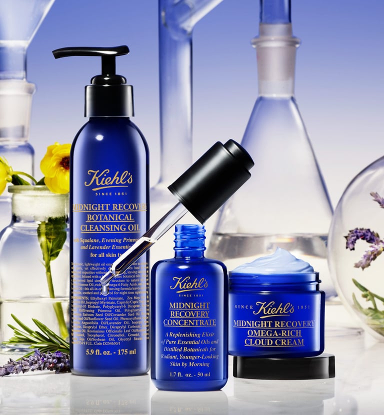My goal for this key visual was to capture the cozy, comforting essence of the bestselling Midnight Recovery Concentrate. I aimed to highlight the blend of science and nature by pairing clean apothecary glassware with the formula's key botanical ingredients.