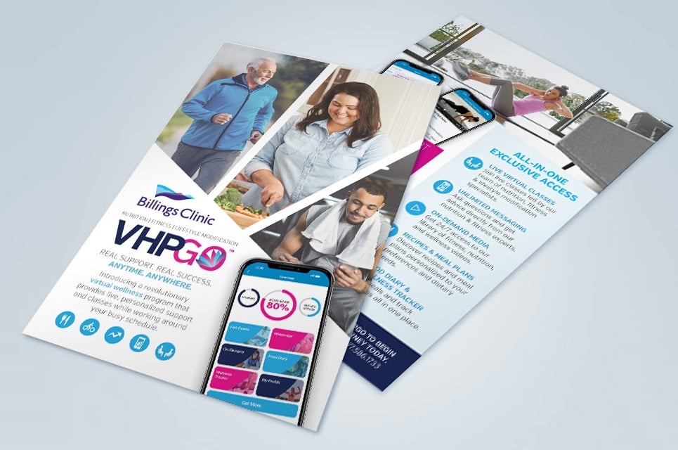 I designed this flyer for Virtual Health Partners, promoting their wellness program platform. The design highlights how their platform supports patients in aftercare with health and wellness resources.